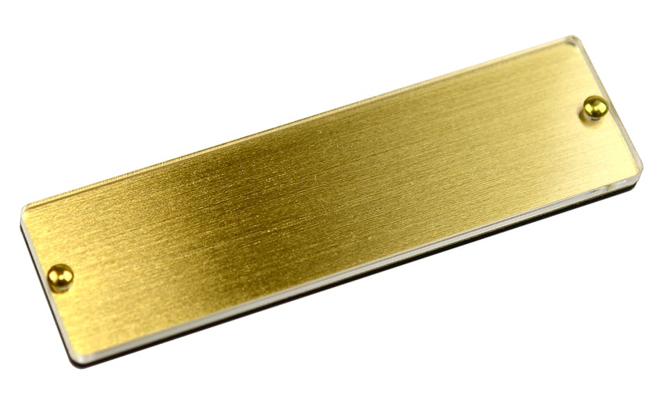 金属の真鍮の上に透明アクリルを載せた、差し替え可能な名札です。裏面に黒アクリルを貼っています。(実用新案取得商品)