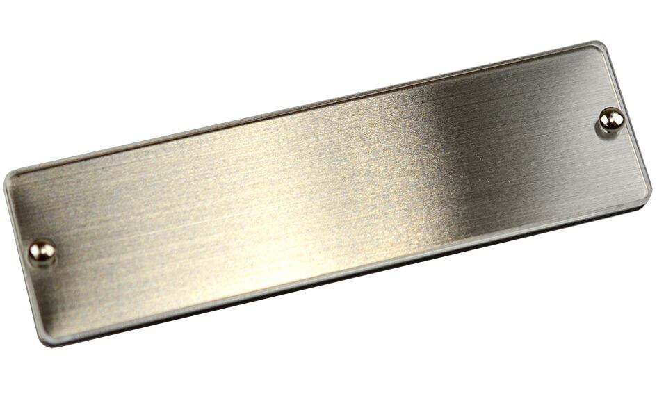 金属の雰囲気を生かしながらテプラシールを使用する事で、コストを抑えた名札使用が可能です。上から透明アクリルを載せる事で、プレートの保護にもなります。