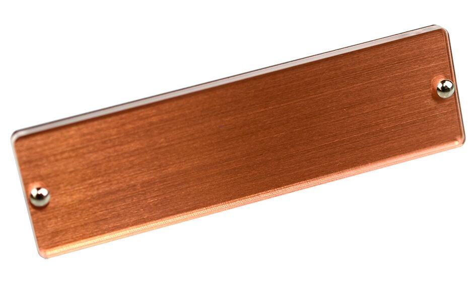 金属の銅の上に透明アクリルを載せた、差し替え可能な名札です。裏面に黒アクリルを貼っています。(実用新案取得商品)